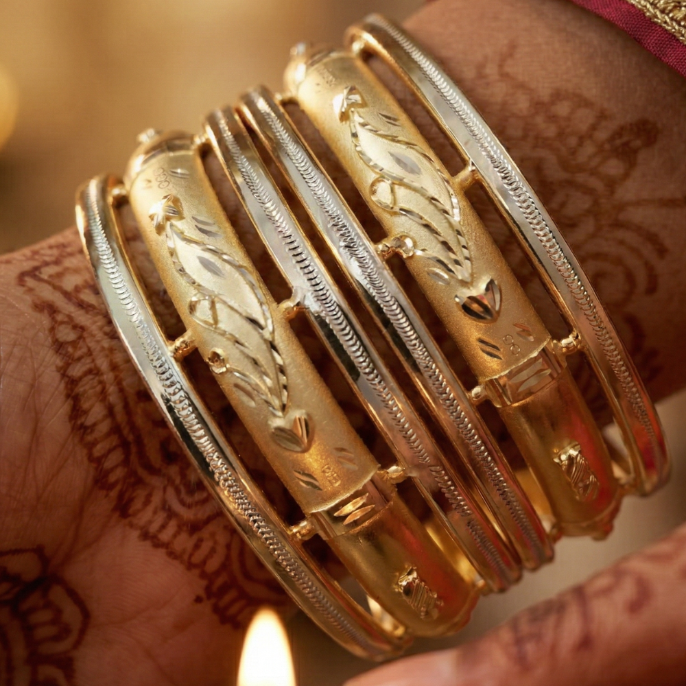 Multi-Textured Finish: These bangles offer a play of contrasts, combining high-polish mirror finishes for enhanced brilliance, sand-blasted matte for depth, and traditional beaded (Rava) detailing for that handcrafted touch.