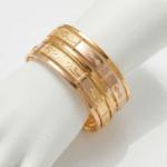 The bold cage-style triple-band architecture adds contemporary flair while maintaining a breathable and lightweight aesthetic. Vertical gold pillars unify the design, resulting in a wide-profile bangle that balances modern sophistication with timeless appeal.