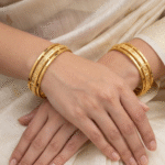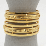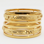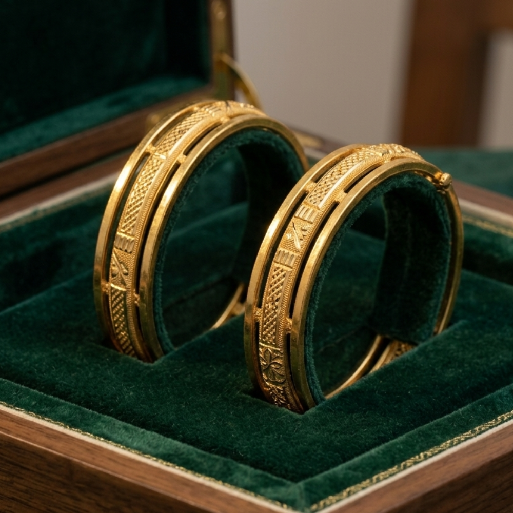 Adorned with geometric engravings and stunning diamond-cut patterns, the middle section of each bangle catches the light beautifully. The intricate detailing creates a bold, yet graceful statement that complements your wrist effortlessly.