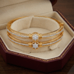 Whether you’re attending a sophisticated bridal event, a glamorous formal gala, or a vibrant festive celebration, these versatile bangles are the ultimate accessory. Effortlessly elevate your ensemble with the unmatched grace and sparkle of the Celestial Starburst Diamond Bangles.