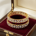 Ideal for bridal collections, luxury gifting, and high-profile festive events, these bangles exude a regal charm that elevates any outfit. Whether paired with traditional attire or contemporary ensembles, the Ornate Fleur-de-Lis Gold Bangles are destined to leave an unforgettable impression.