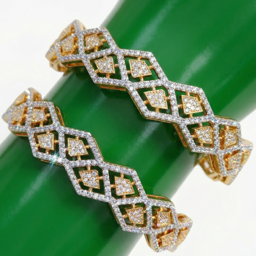 Whether you’re accessorizing an evening gown or a traditional festive outfit, these bangles offer unmatched versatility. Their striking sparkle and architectural framework make them the ideal statement piece for those who want to leave a lasting impression. Upgrade your collection with this marriage of modern geometry and classic elegance.