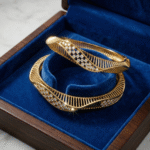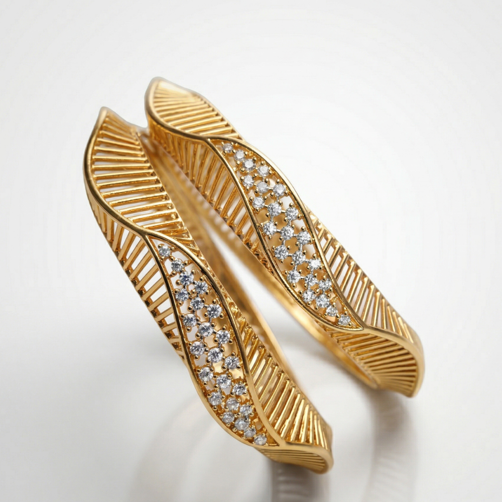 Expertly crafted using “jaali” design techniques, these bangles add structural depth and architectural finesse. Ideal for evening wear, festive celebrations, or high-end gifting, they effortlessly elevate any outfit, making them a cherished addition to both modern and traditional wardrobes.