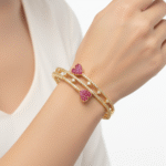 Looking for a meaningful gift? This bracelet is a heartfelt option that conveys love and appreciation. Its luxurious gold plating exudes refinement, while the pink stone and leaf motifs symbolize vibrancy and growth perfect sentiments for commemorating life’s special moments. Presented in an elegant packaging, it’s a thoughtful gift for anniversaries, birthdays, or milestones.