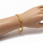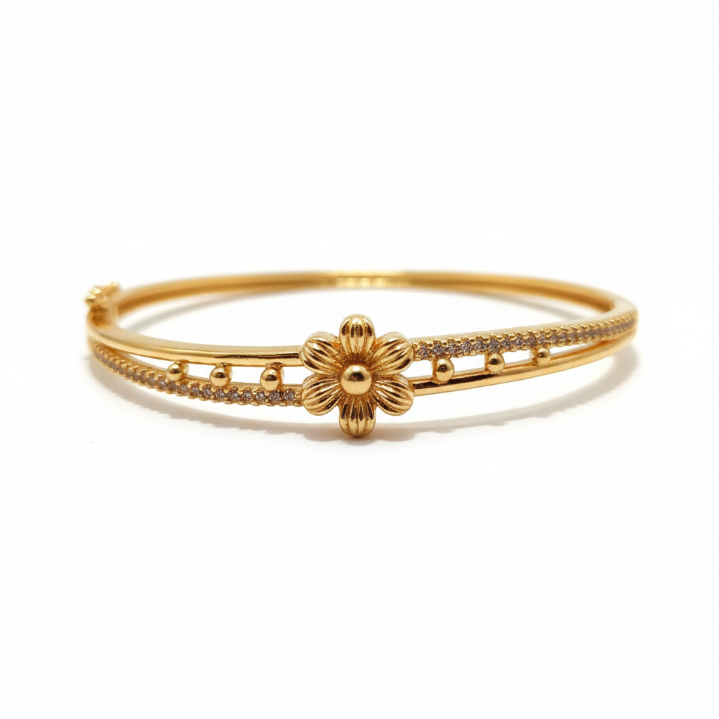 Make a bold statement with this stylish gold-plated bracelet that effortlessly blends timeless charm with modern aesthetics. The exquisite design radiates sophistication, making it a perfect accessory for any occasion. The gleaming gold plating pairs beautifully with the sparkling diamond-studded elements, adding a touch of luxury to your outfit. Its versatile appeal ensures it’s just as fitting for formal celebrations as it is for casual gatherings.