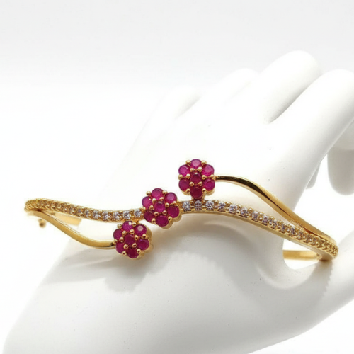 The unique floral and loop design gives this bracelet a distinctive aesthetic appeal. Each delicate curve and detail is carefully crafted to showcase luxury and finesse. Whether you’re heading to a festive celebration, a wedding party, or a special event, this bracelet ensures you stand out with its vibrant color accents and striking presence.