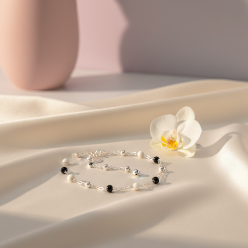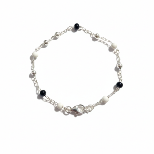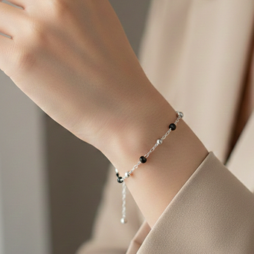 The bracelet is secured with a standard silver lobster clasp, ensuring it remains comfortably fastened throughout the day. The lobster clasp complements the bracelet’s clean, streamlined aesthetic while providing proven durability. Lightweight yet sturdy, this piece is designed for everyday wear, making it a versatile addition to any jewelry collection.