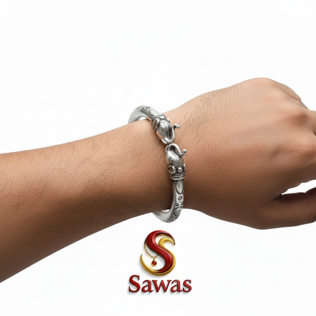 For admirers of heritage-inspired designs, the traditional cuff-style bangle with detailed elephant heads is a true masterpiece. This stunning piece reflects cultural richness and creativity, evoking themes of strength, wisdom, and grandeur. Animal-motif jewelry, like this cuff bangle, holds a special place in traditional craftsmanship, paying homage to the art and symbolism found in Indian ethnic jewelry. Crafted with intricate detailing, this piece is perfect for special occasions or as a thoughtful gift for someone who cherishes meaningful artistry.