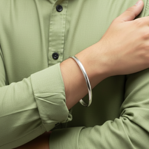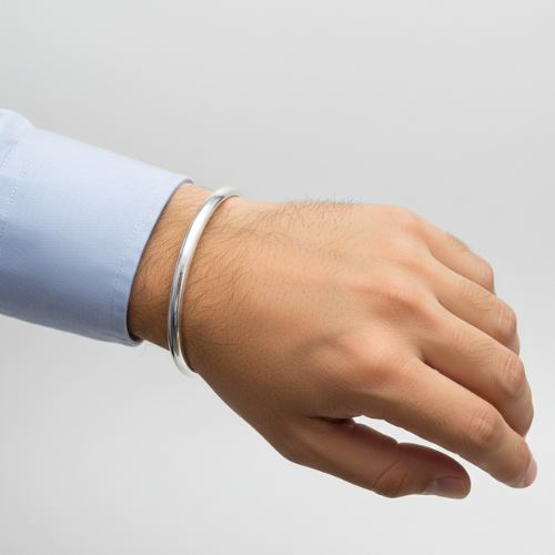This silver bangle for men is designed to combine simplicity with modern sophistication. Its polished finish radiates a subtle elegance, making it adaptable to various outfits, whether casual or formal. With multiple options ranging from smooth, plain surfaces to intricate geometric designs and engraved wave patterns, this bangle caters perfectly to diverse personal styles.