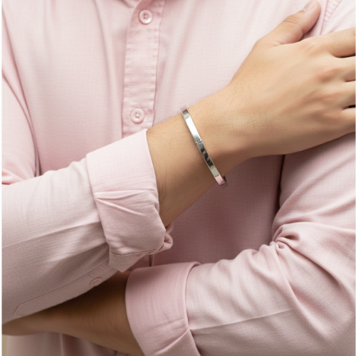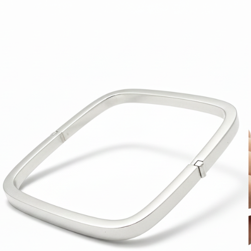 This stunning collection includes a variety of bangle styles to suit all aesthetics. The sleek, polished square bangle with rounded corners and a secure clasp offers a contemporary statement piece for those who love clean, minimalist designs. The classic polished round bangle is an ode to timeless simplicity, effortlessly complementing any outfit from casual to formal. For those seeking intricate detailing, the rounded bangle with a textured central stripe framed by beaded milgrain borders adds depth and interest, making it a unique visual masterpiece. Finally, the round bangle featuring a continuous etched interlocking infinity pattern symbolizes endless grace and harmony, perfect for those who prefer symbolic designs with a hint of sophistication.