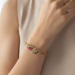 This stylish bracelet is the perfect accessory for celebrating special milestones, attending festive events, or enhancing your everyday ensemble. With its modern traditional charm, it pairs effortlessly with ethnic wear, contemporary outfits, or even semi-formal attire, giving you unmatched versatility. Whether as a gift for a loved one or a personal indulgence, this gold-plated bracelet is sure to delight and inspire.