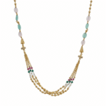 There’s no better way to add flair and sophistication to your festive wardrobe than with this multi-layered gold necklace. Its intricate design and vibrant accents make it an ideal choice for weddings, parties, and other celebrations. Pair it with your favorite traditional attire, like sarees or lehengas, or stand out by layering it over a contemporary outfit for an effortlessly chic look. Discover the joy of owning a piece that combines style, versatility, and cultural significance. Treat yourself or gift this exquisite piece to a loved one—it’s a timeless treasure for anyone who appreciates fine jewelry.