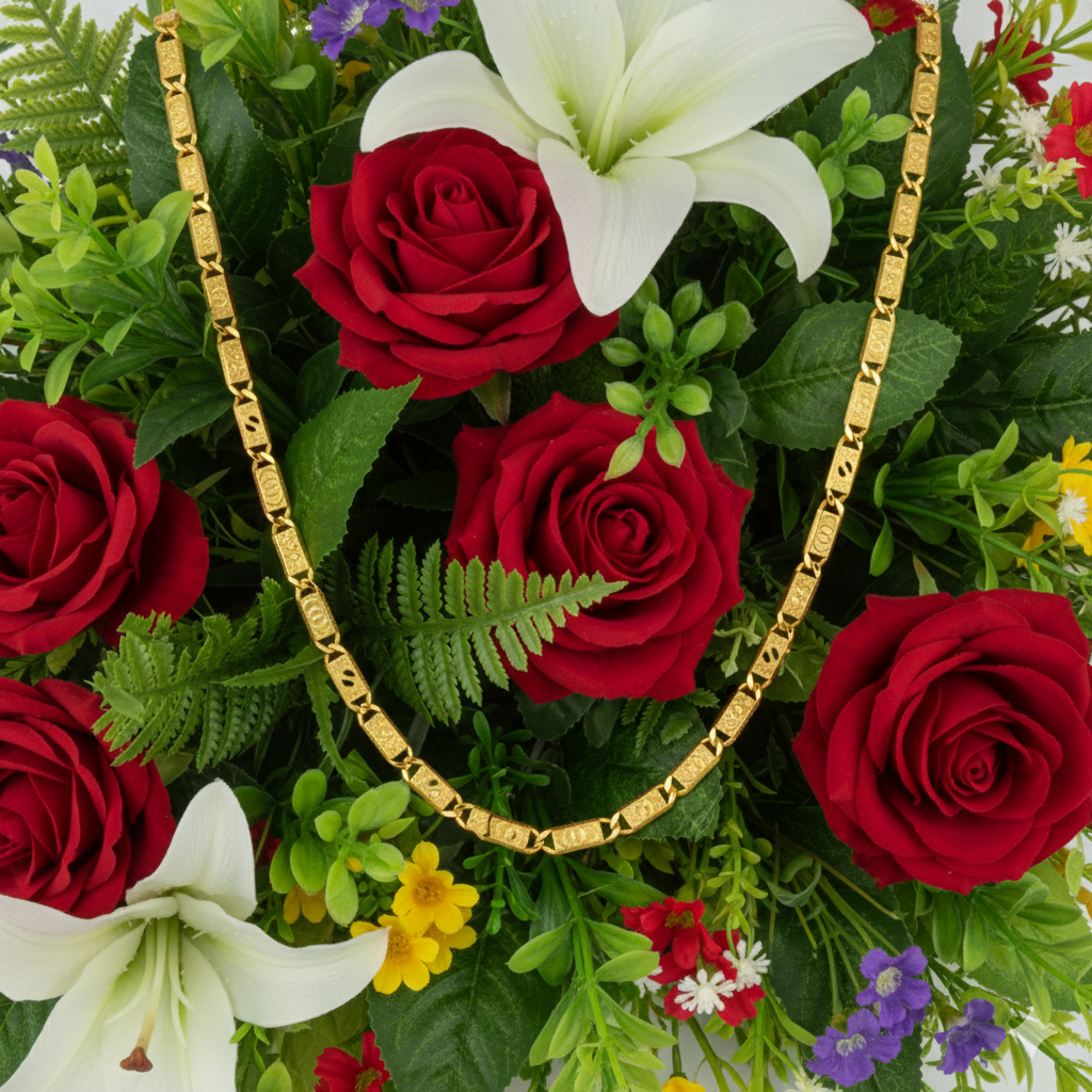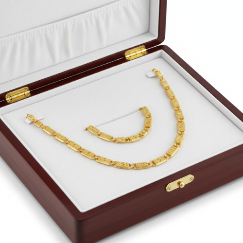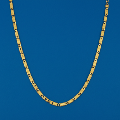 Designed with care, this gold chain is lightweight and comfortable for daily wear. Its polished yet understated design allows it to shine both as a standalone piece and as the perfect complement to layered jewelry. The textured rectangular links add a unique flair that sets it apart from ordinary chains, making it suitable for weddings, anniversaries, or even casual outings when you want to exude effortless grace. This gold chain is the embodiment of everyday luxury.