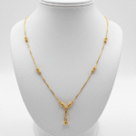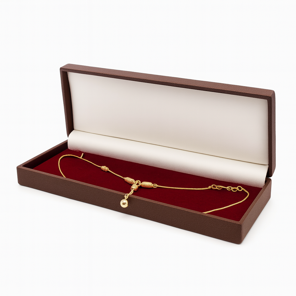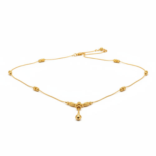 At the heart of this exquisite gold chain lies the drop pendant—a graceful centerpiece that adds visual interest and elevates the overall aesthetic. The subtle traditional charm of the pendant brings timeless beauty to this piece, making it suitable for both casual outings and special occasions. Its design is understated yet impactful, ensuring it appeals to those who appreciate simplicity and elegance.