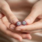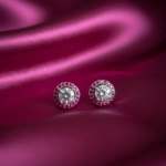 Perfect for pairing with any outfit, these earrings offer versatility without compromising on style. Whether you’re dressing up for an elegant evening or adding a touch of sparkle to a casual ensemble, these striking studs offer the flexibility to complement any look effortlessly. The vibrant pink or ruby-red accent stones create a bold yet sophisticated contrast, ensuring that all eyes are on you. Displayed elegantly against a luxurious fuchsia or magenta satin background, these earrings also make for an ideal gift option, embodying both thoughtfulness and refined taste.12