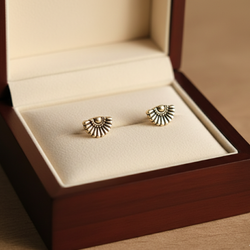 Elevate your personal style or treat someone you care about with a piece that blends charm and sophistication. These elegant gold-toned fan-shaped stud earrings are the perfect way to celebrate beauty in simplicity while making an unforgettable impression. Order yours today and experience the difference that exquisite design and craftsmanship can make!