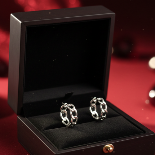 If you’re seeking an accessory that combines bold design, minimal charm, and unmatched versatility, these silver chain-link hoop earrings are the perfect choice. With their ability to elevate any outfit effortlessly, they embody a contemporary aesthetic, making them a must-have addition to your jewelry collection.