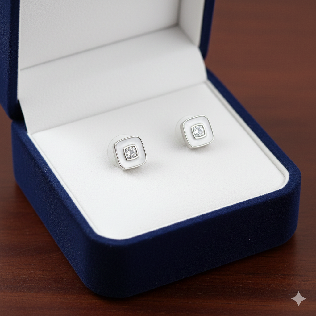 Whether you’re shopping for yourself or someone special, these silver stud earrings with their sleek square design and sparkling center stone are a must-have addition to your collection. Experience the perfect blend of elegance, comfort, and durability—order yours today and make everyday moments shine a little brighter.5
