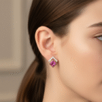 Discover the perfect blend of modern design and timeless elegance with these geometric rose gold stud earrings. Featuring a captivating square-cut pink gemstone, reminiscent of tourmaline or pink sapphire, this accessory radiates a gentle yet striking charm. The gemstone is encased in a rose gold bezel setting, offering a balanced combination of contemporary style and classic allure. Whether you’re dressing for an evening gala or a casual brunch, these earrings promise to elevate your ensemble effortlessly.
