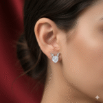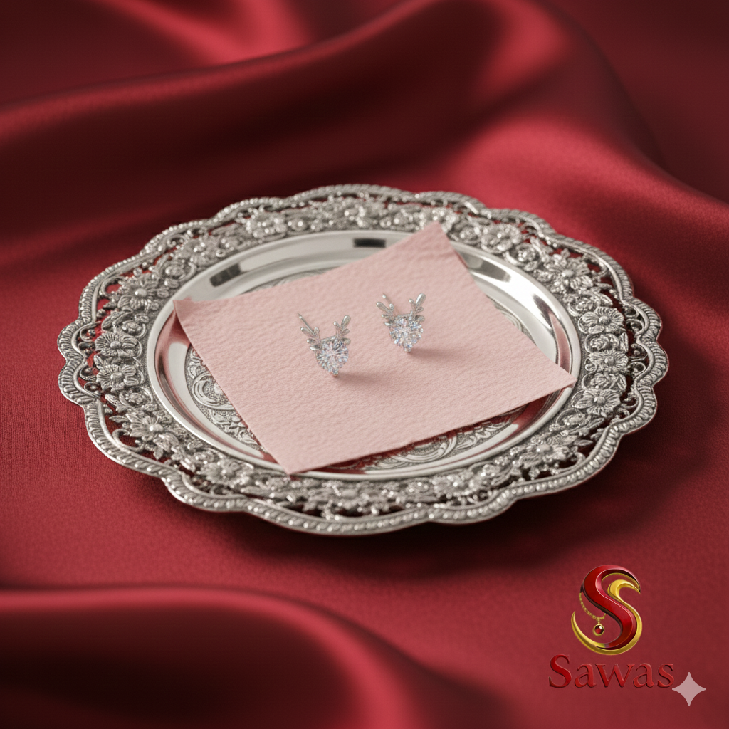 These silver-toned stud earrings are perfect for adding a touch of festive charm to your holiday look. Designed with elegance and whimsy in mind, these studs feature a delightful reindeer design centered around a sparkling, heart-shaped or round-cut white stone, likely crafted from cubic zirconia. The brilliant stone forms the face of the reindeer, giving it a playful yet refined appearance that’s sure to catch everyone’s eye.