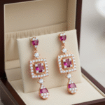 Whether you’re attending a glamorous party, a romantic wedding, or a sophisticated evening event, these rose gold-plated dangle earrings are the perfect accessory to enhance your outfit. The combination of vibrant hues and sparkling detail adds a pop of color while maintaining a refined elegance. Pair them with your favorite dresses, gowns, or formal attire to achieve a polished and chic look effortlessly. These earrings are a surefire way to make your style shine on the grandest occasions.
