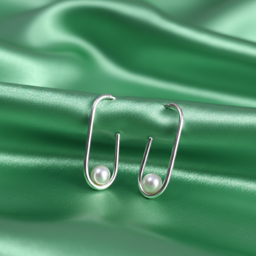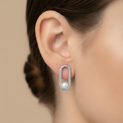 Our earrings are a standout accessory in their category, offering a fresh take on traditional designs. The streamlined silhouette of the white metal, likely silver or rhodium-plated, ensures durability, shine, and a lightweight feel, making it perfect for all-day wear. The hanging pearl nestled within the curve of this modern shape creates an eye-catching and harmonious aesthetic that aligns flawlessly with contemporary fashion trends. Each detail is thoughtfully crafted to make these earrings a versatile addition to your jewelry collection.