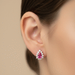 These stud earrings are not just stunning—they’re also exceptionally versatile. The radiant pink gemstone serves as the centerpiece, making a bold yet graceful statement. Meanwhile, the surrounding white stones add an extra layer of brilliance, creating a harmonious blend of color and shimmer. Pair them with an elegant dress for formal occasions, or let them add a chic touch to your everyday attire.