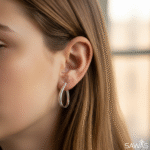 If you’re searching for versatile, everyday pieces, the Chunky Dome Hoops and Flat Hoops are your go-to options. The Chunky Dome Hoops embody timeless sophistication with their smooth, rounded profile in silver, perfect for casual or formal settings. On the other hand, the Flat Hoops in rose gold deliver contemporary flair through their clean, rectangular profile—classic yet undeniably chic.