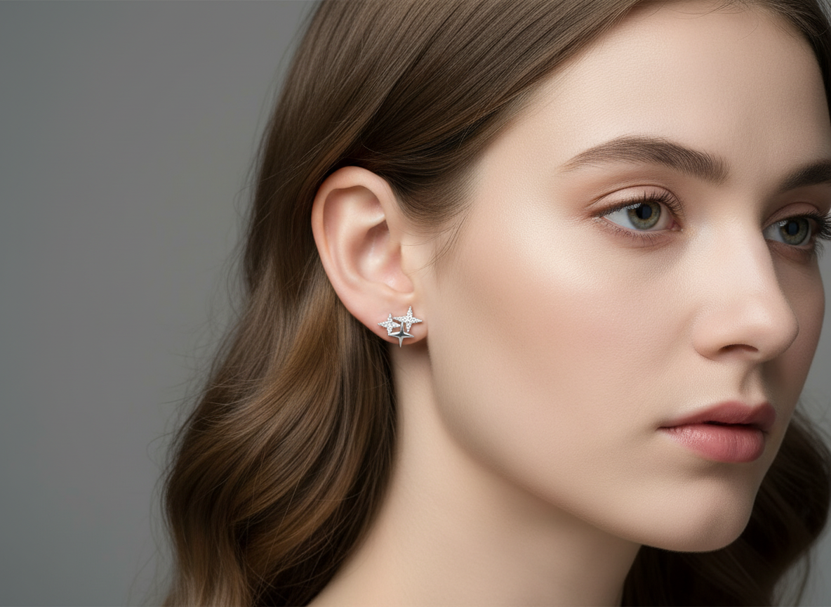 These stunning star-shaped earrings are a perfect blend of elegance and functionality. Designed to complement your every day or special occasion outfits, they feature a sparkling cluster design that exudes sophistication and charm. The intricate detailing creates a delicate yet eye-catching accessory that shines brightly without overpowering your overall look. Whether you’re dressing up for a formal dinner or adding a hint of glamour to your casual attire, these earrings are a versatile addition to your jewelry collection.