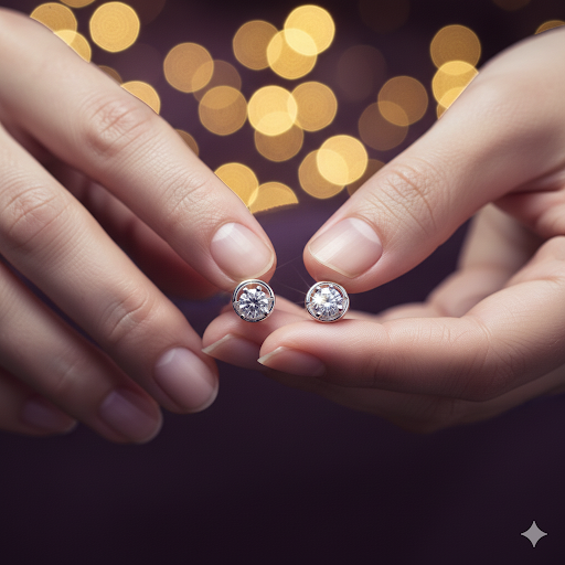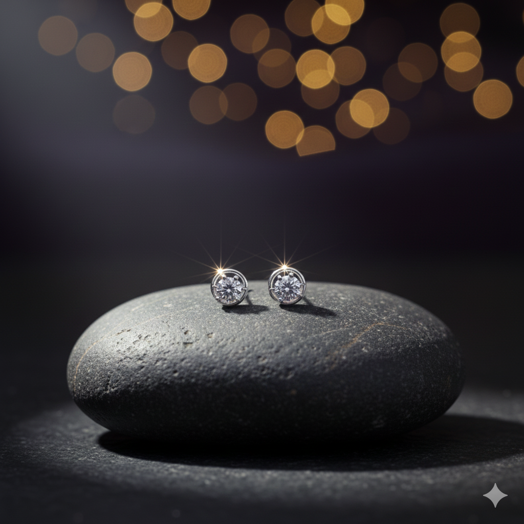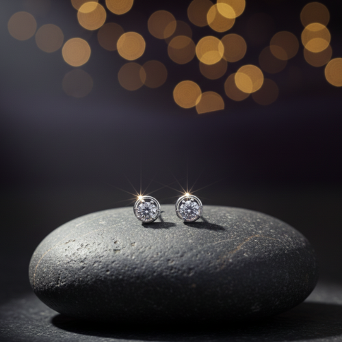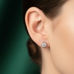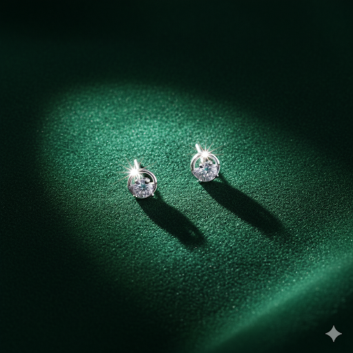 Perfectly styled under the spotlight against a deep emerald green velvet backdrop, these earrings are designed to make a statement. The contemporary round stud style offers versatility, making them ideal for a range of occasions—elegant evening events, casual daywear, or professional settings. Their brilliant sparkle and lightweight design ensure comfort while adding a touch of glamour to any outfit.