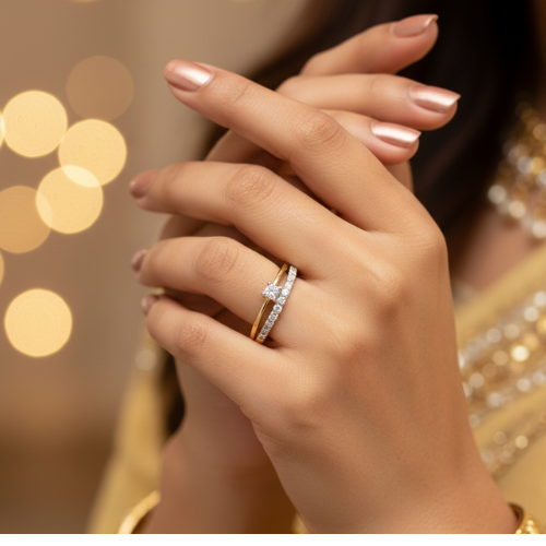 Whether it’s a celebration, anniversary, or just elevating your everyday attire, this contemporary yellow gold ring offers unmatched versatility. Its stacked look and layered design make it a standout in any jewelry box. The minimal yet elegant aesthetic is ideal for those who appreciate modern flair without compromising on timeless charm.