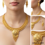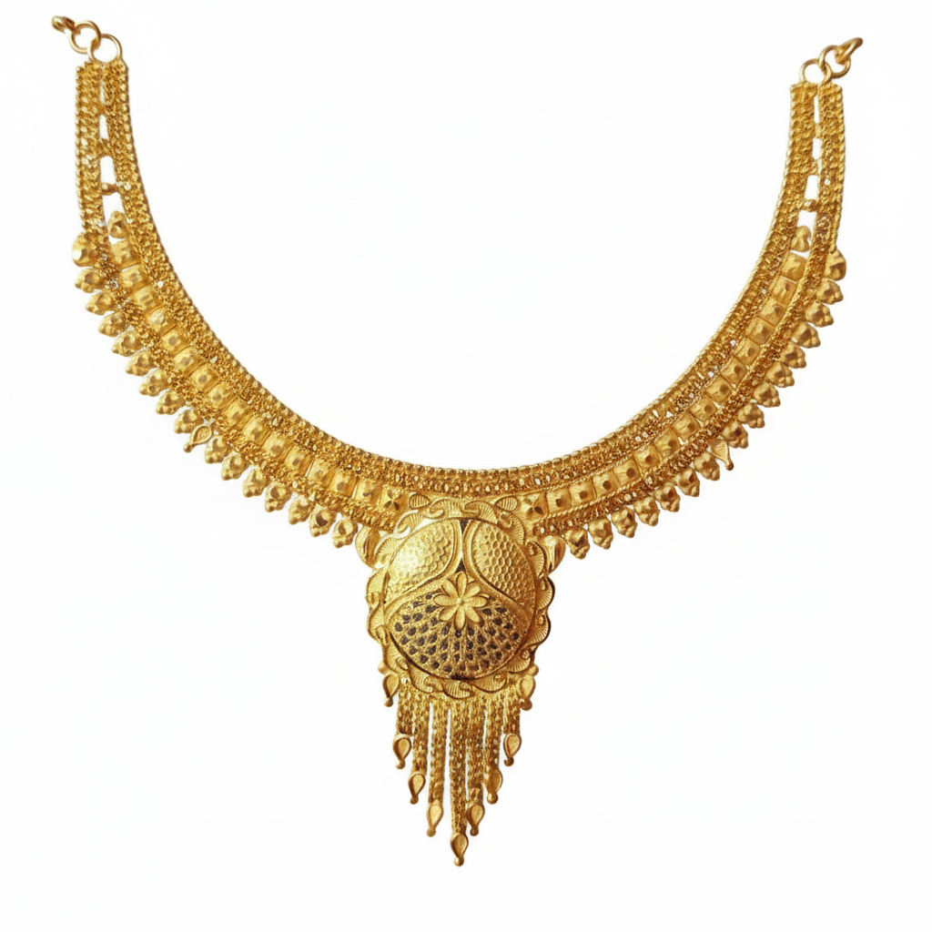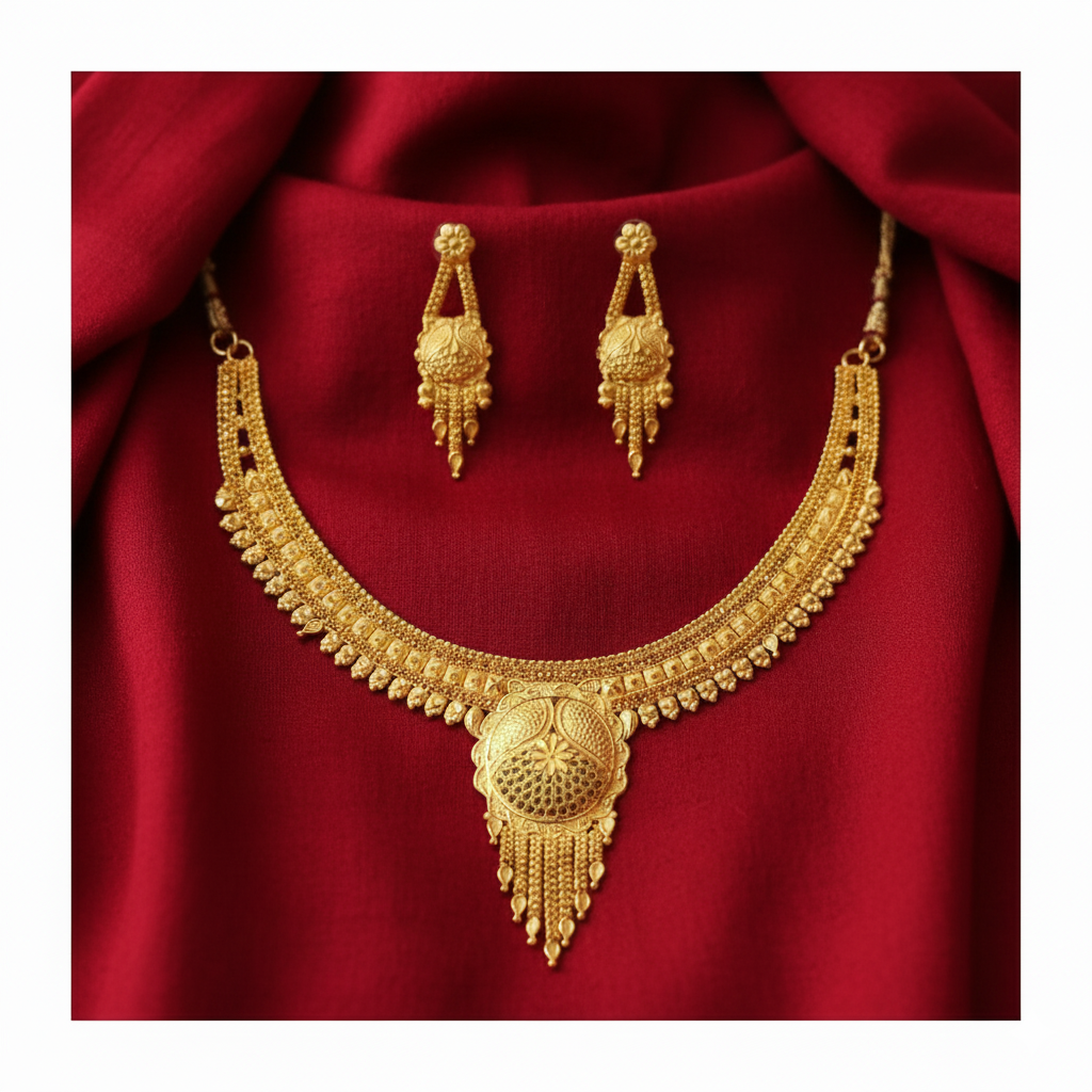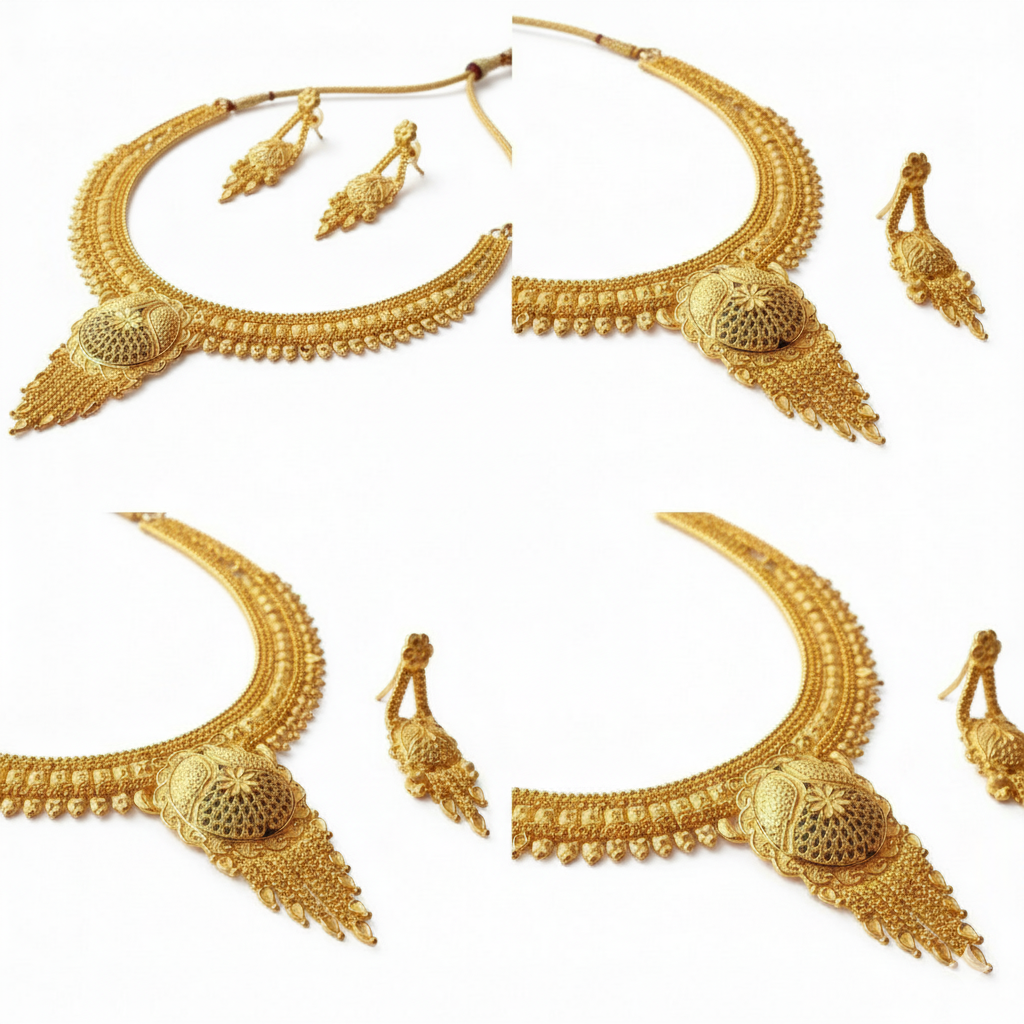 Add this exquisite gold necklace set to your collection and embrace the beauty of traditional artistry combined with modern sophistication.
