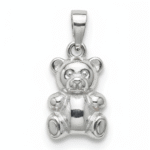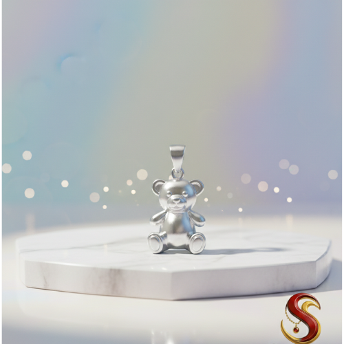 The pendant’s material evokes luxury with its bright, reflective silver tone—crafted from either sterling silver or white gold. Designed for everyday wear or special occasions, the sturdy tapered bail atop the pendant ensures effortless attachment to necklaces and charm bracelets. This blend of durability and elegance makes the pendant suitable for children or adults, appealing to those seeking a sentimental yet stylish accessory. Whether worn as a standalone piece or complemented by your favorite chain, this teddy bear pendant promises unmatched versatility.