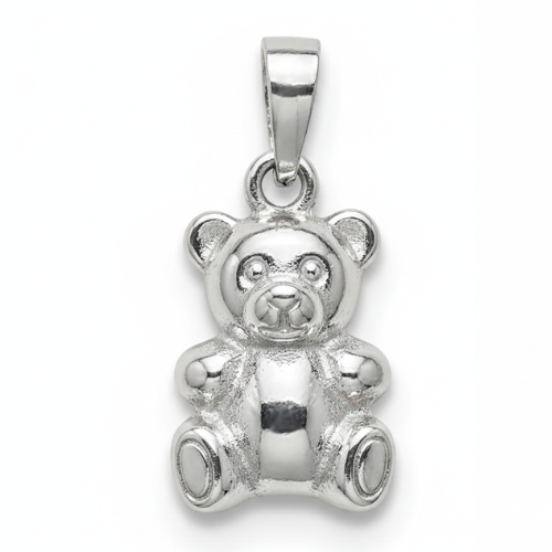 Discover the charm of this polished silver-toned teddy bear pendant—a piece that effortlessly combines whimsical design with sophisticated craftsmanship. Perfectly suited for both children’s jewelry collections or as a sentimental keepsake, this pendant is a versatile accessory that celebrates timeless design. Featuring a classic seated teddy bear pose, this piece radiates warmth and nostalgia—making it the ideal gift for loved ones or a delightful addition to your own accessory lineup.