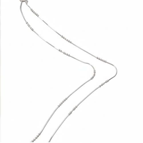 The Snake Chain with Mixed Beads strikes the perfect balance between sleek sophistication and subtle sparkle. Its silver snake chain is paired with alternating satin-finish oval beads and diamond-cut rondelles. This exquisite combination of textures catches the light beautifully, making it an ideal accessory for casual or formal outfits. Whether worn solo or layered, this design adds understated elegance to your look.