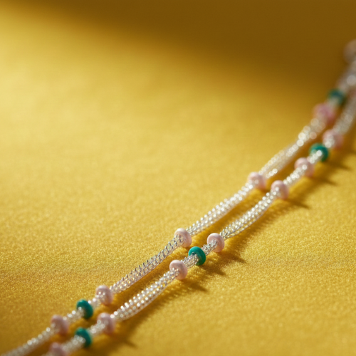 Showcase your personality with our Bohemian-inspired payal anklets. Available in multi-strand silver chains accented with colorful beads like turquoise and yellow, or pink and teal, these anklets are designed to add a playful, vibrant touch to your wardrobe. Ideal for lively events or casual outings, they reflect a carefree and stylish vibe.
