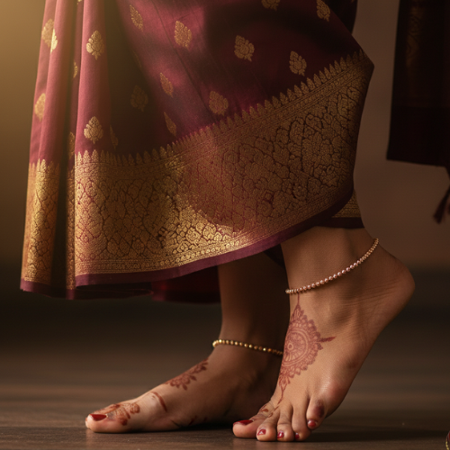 - Traditional Payals: Heavier, intricately crafted in silver, gold, or oxidized finishes, often adorned with detailed engravings or small charms.