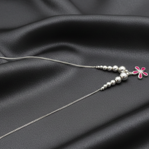 Introducing the exquisite Silver-Toned Floral Charm Anklet (Payal) by Sawas—a perfect blend of traditional artistry and modern elegance. This anklet features a minimalist silver-toned chain that serves as the canvas for the vibrant pink enamel floral charm as its centerpiece. The design exudes simplicity yet makes a bold statement, seamlessly radiating sophistication and femininity. Sawas has created an accessory that complements an array of styles and occasions, ensuring you always stand out.