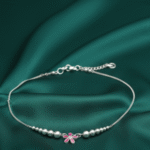 The charm is beautifully flanked on either side by graduated silver beads, adding structure and enhancing its visual appeal. These subtle yet impactful design elements amplify the anklet’s graceful look, making it a perfect focal point when worn on your ankle. Every detail has been thoughtfully curated to elevate your jewelry collection. Whether you’re looking to accessorize ethnic lehengas or breezy sundresses, this anklet transitions effortlessly between traditional and Western ensembles.