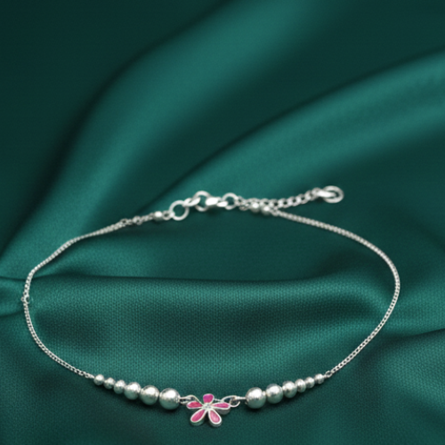 Elevate your style and celebrate timeless craftsmanship with the Silver-Toned Floral Charm Anklet—an accessory designed to add charm and grace to every step you take.