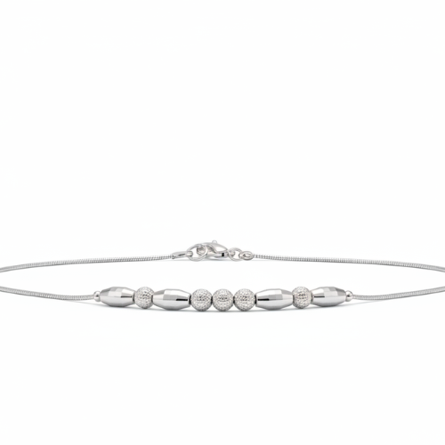 Sleek Beaded Snake Chain: Featuring a smooth and flexible design, this snake chain offers optimal comfort and style. It is beautifully accented with alternating polished and textured silver beads, perfect for a refined, yet modern statement piece.