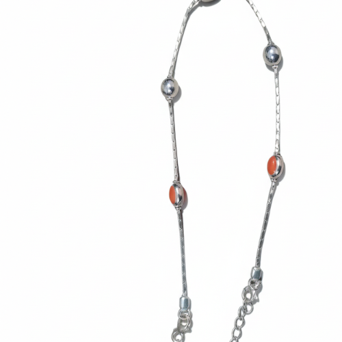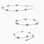 2. Gemstone Detailing: A classic silver chain adorned with smooth, oval-shaped blue and orange gemstones. Their vibrant colors and intricate detailing ensure these payals stand out as statement pieces.