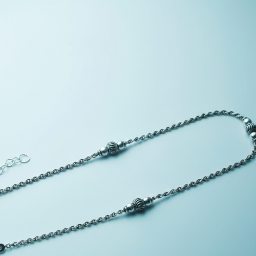 Design: The slim, twisted rope chain is stylish yet delicate, designed to flatter the ankle’s curve. Decorative silver beads add intricate detailing, while the sophisticated twist ensures the anklet stands out.