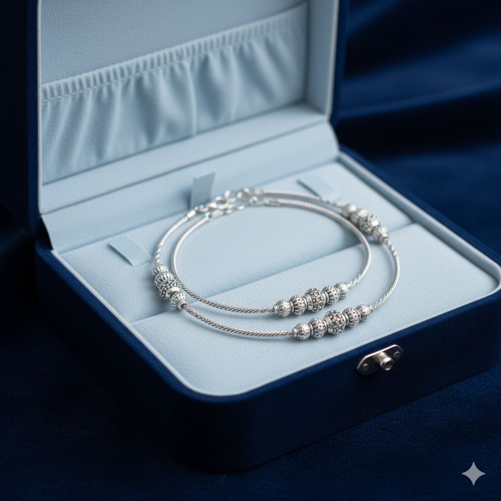 What sets these payals apart is their adaptability for different occasions. Lightweight designs ensure comfort for day-long wear, while elaborate patterns adorned with subtle embellishments are a statement of sophistication. Designed to suit various tastes, these anklets can be styled effortlessly with sarees, lehengas, kurtis, or even fusion outfits, making them a must-have accessory for anyone seeking to elegantly bridge tradition and modernity.