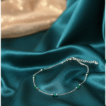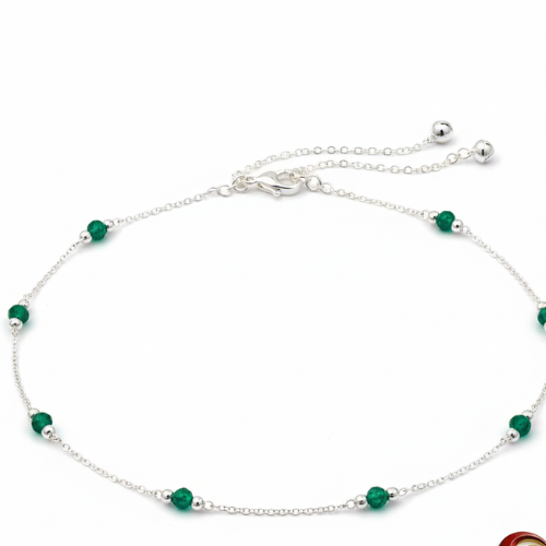 Timeless elegance takes center stage with the Sawas Emerald-Green Station Payal. This anklet features a fine silver chain with evenly spaced faceted emerald-green beads nestled between tiny silver spacers. With its understated charm, this gemstone payal is ideal for those seeking subtle yet high-end sophistication. Whether it’s daily wear or a formal celebration, the lobster claw clasp and extended chain ensure a perfect fit and a seamless finish to your look.