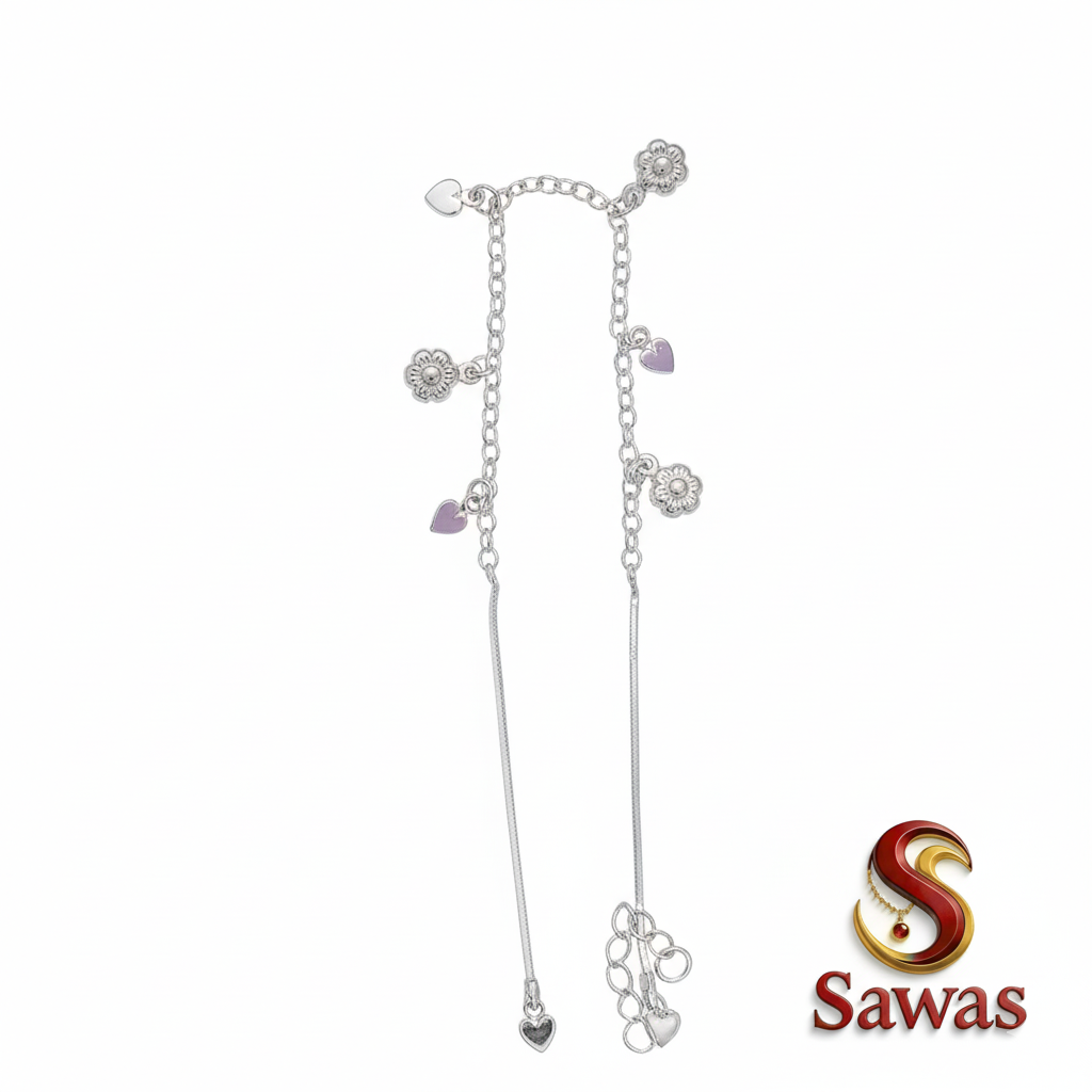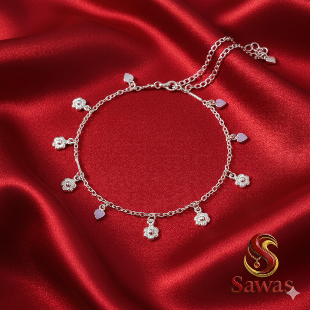 Floral and Heart Charm Link Payal