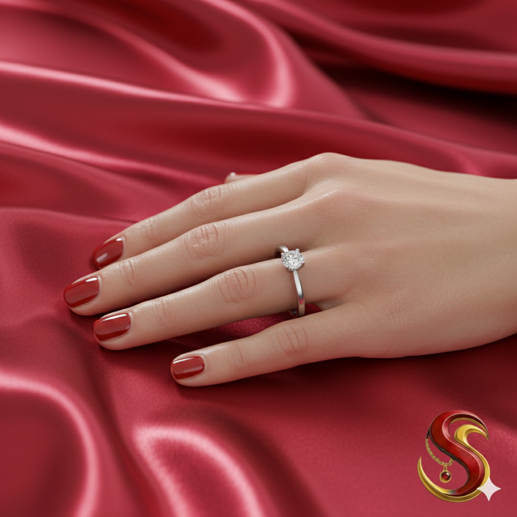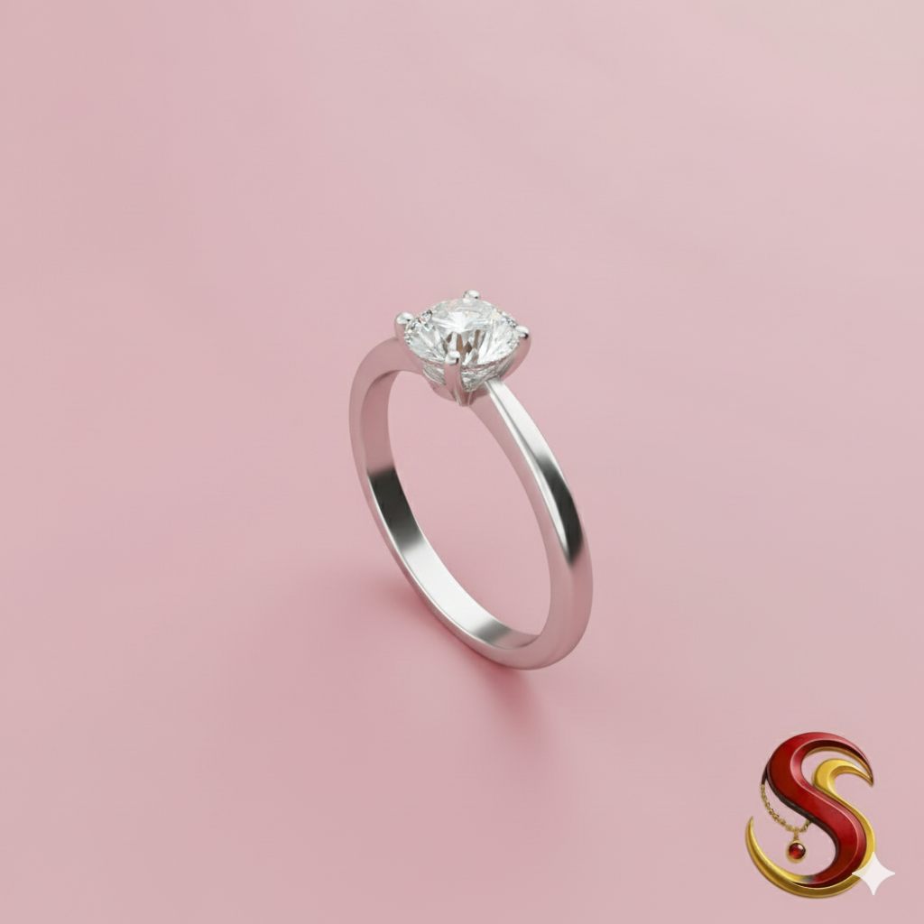 Every detail of this ring has been thoughtfully designed to ensure it stands out. The solitaire stone sparkles brilliantly, drawing attention with its classic round-cut design. The silver band boasts a subtle sheen, offering a refined contrast that perfectly complements the centerpiece. Its smooth finish ensures ultimate comfort, while the four-prong setting securely holds the stone in place, symbolizing durability and trustworthiness.