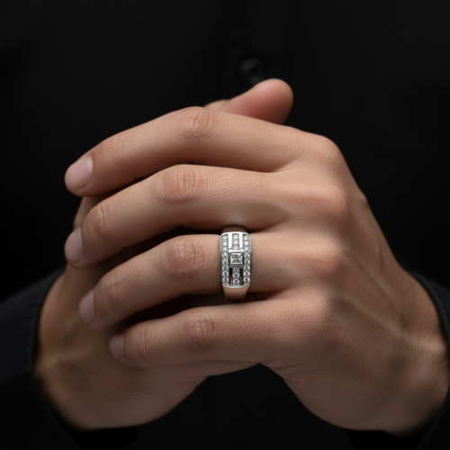 Bold yet sleek, this ring is perfect for men looking to elevate their everyday style or celebrate life’s special moments. Whether paired with formal attire or worn as an everyday accessory, this piece effortlessly enhances your look. It’s a versatile option for individuals who appreciate modern design with a hint of sophistication.