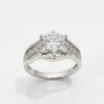 This ring commands attention with its carefully crafted split shank design, which is adorned with sparkling accent stones. These dazzling details amplify its luxurious aesthetic, ensuring you’re always the center of admiration. From its fine metallic sheen to the precision-cut stones, the ring embodies sophistication down to every intricate element.