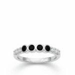 From the Black Stone Linear Ring with its bold row of four round, bezel-set black stones and contrasted clear pave crystals on the slim shoulders, to the Triple-Stone Arch Ring with its exquisite combination of three round stones and an arched pave crystal floating design, these pieces are bound to make a statement. Their balanced modern and bold aesthetic ensures these rings turn heads regardless of the event.